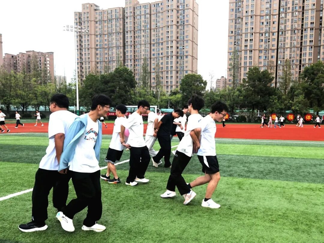 此外,同学们还分组进行了接力赛,每两人背对背夹着气球,看哪个队最先完成接力,气球掉落或爆炸需在原地整理后继续跑动。