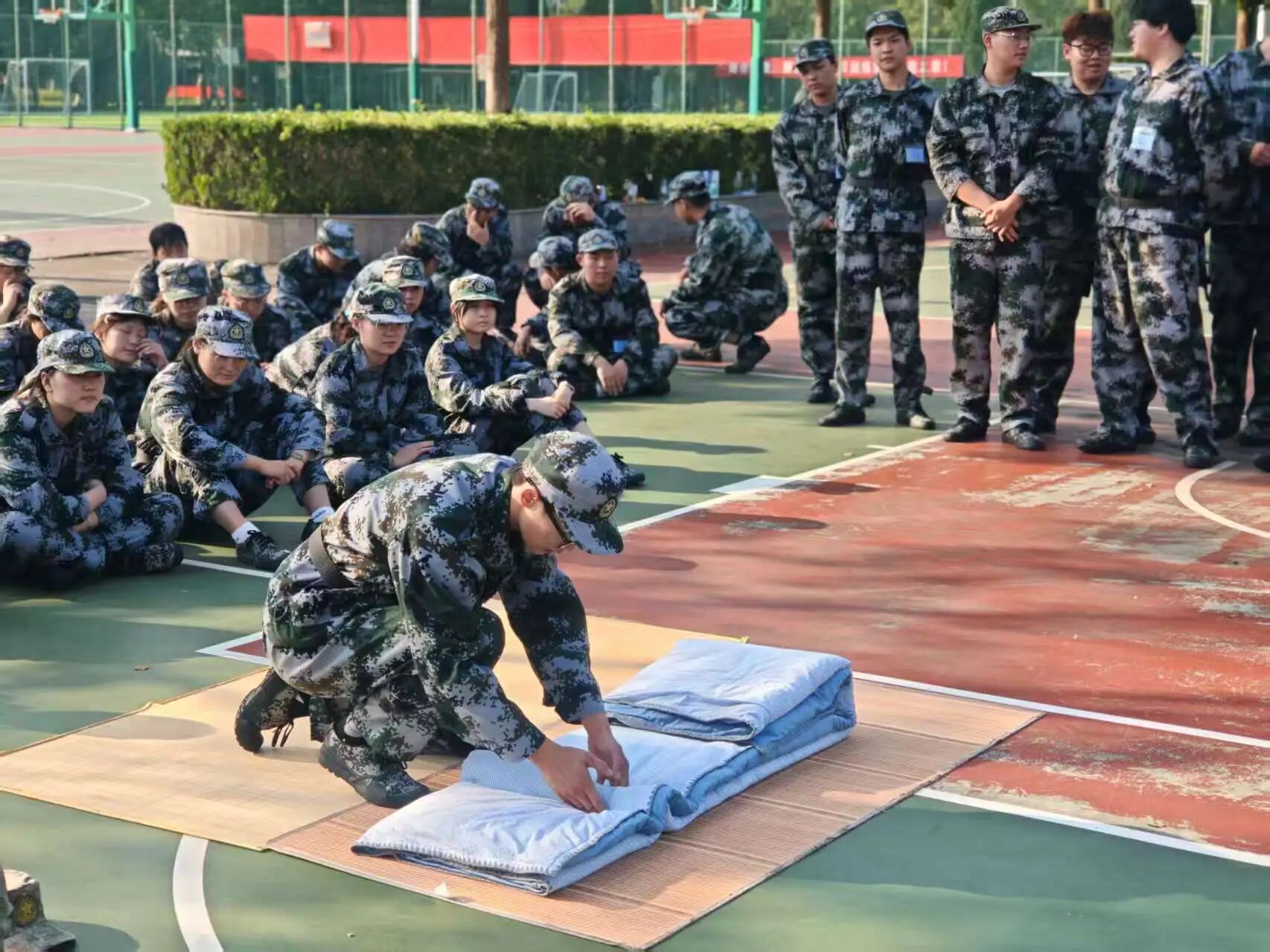 训练场上的口号声暂歇,另一场关于"方正"的修炼正悄然展开。同学们将松软的被子精心折叠,力求方正。每一次的折叠与抚平,都是对严谨态度的磨砺。当松软的棉被最终化为整齐划一的“豆腐块”,这不仅是军被的标准形态,更是对“精益求精”精神的深刻诠释。这一过程,不仅锤炼了同学们的细致与专注,更为他们未来的职业生涯奠定了坚实的基础。
