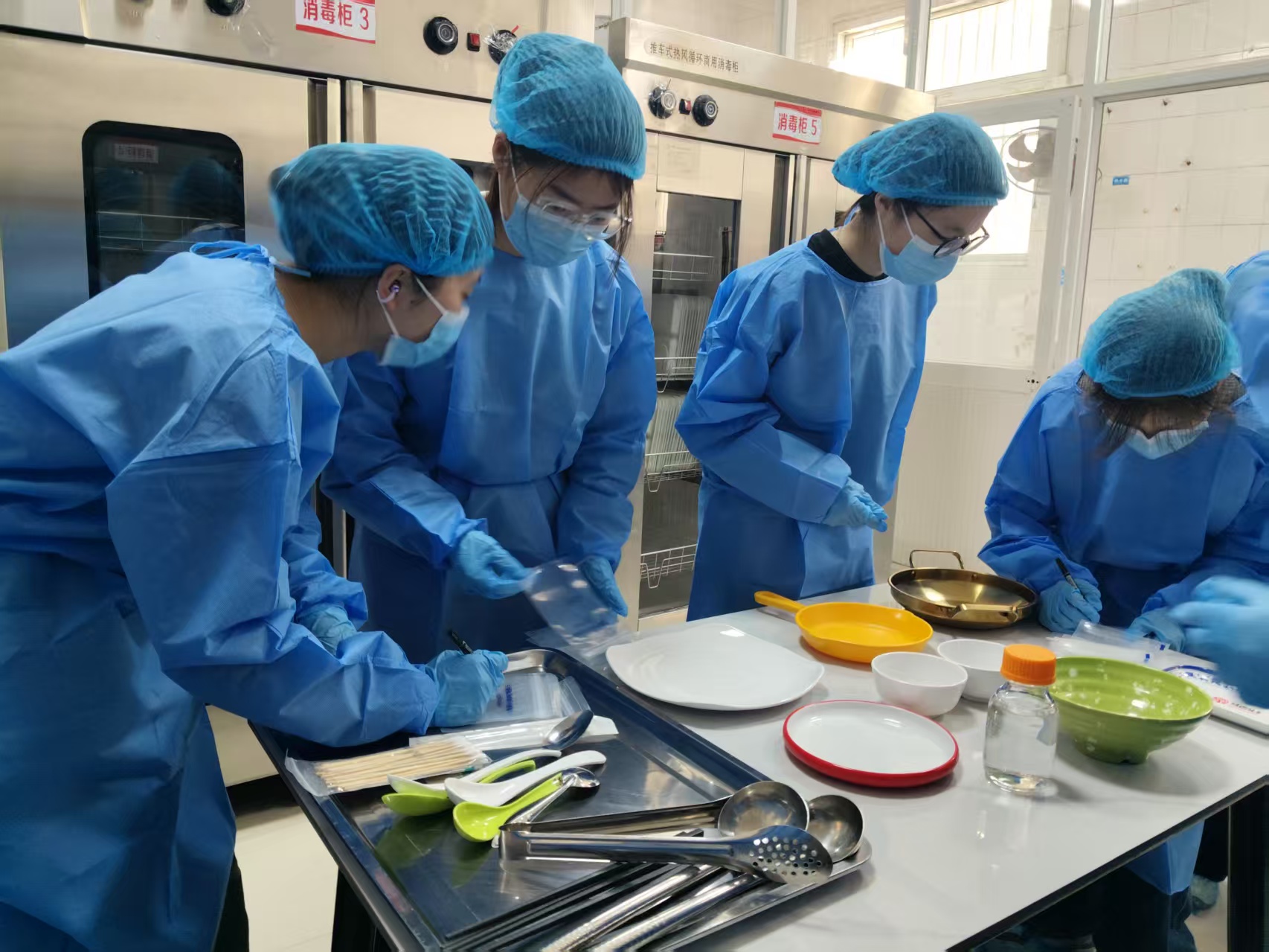 活动不仅聚焦美食,更充分发挥医学技术学院的学科优势。科普展示区中,放大1000倍的沙门氏菌、李斯特菌等常见致病菌模型直观呈现,配合详实的图文与流程解析,生动揭示了食品污染传播路径。实地检测区成为全场焦点,医学技术学院师生现场演示了针对冰箱、厨具、工作人员手部等关键环节的卫生检测流程,并公示餐具洁净度等检测数据,打破“表面洁净即安全”的认知误区,传递科学食安理念。