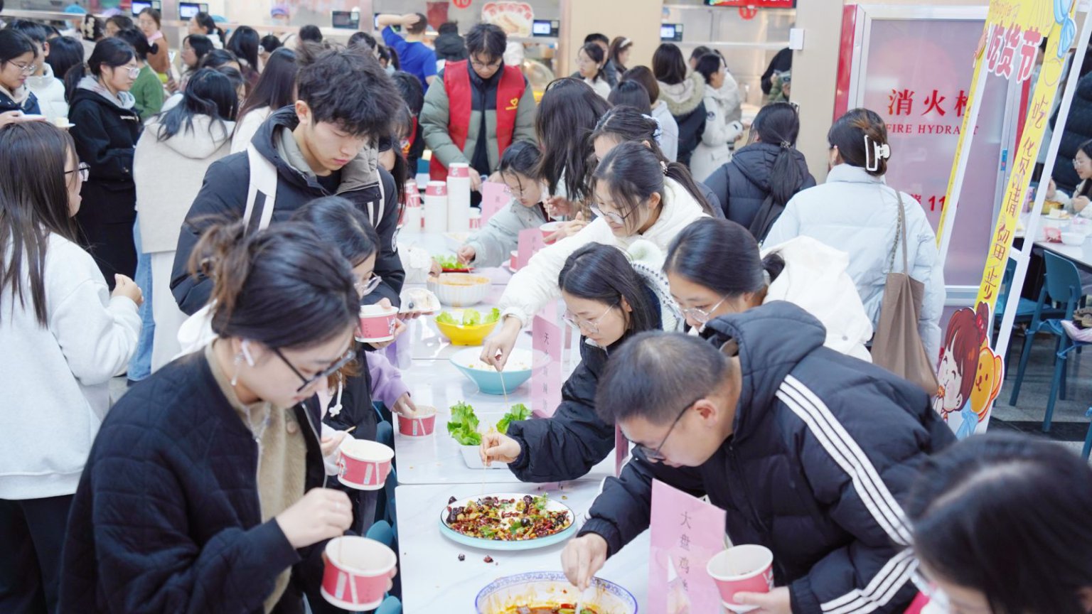 美食节现场,一食堂中心活动区汇聚了天水麻辣烫、大盘鸡拌面、西安肉夹馍等十一类特色风味,吸引了师生们在美食专区流连驻足,于氤氲热气中尽享多元风味,体验了一场味蕾的盛宴。