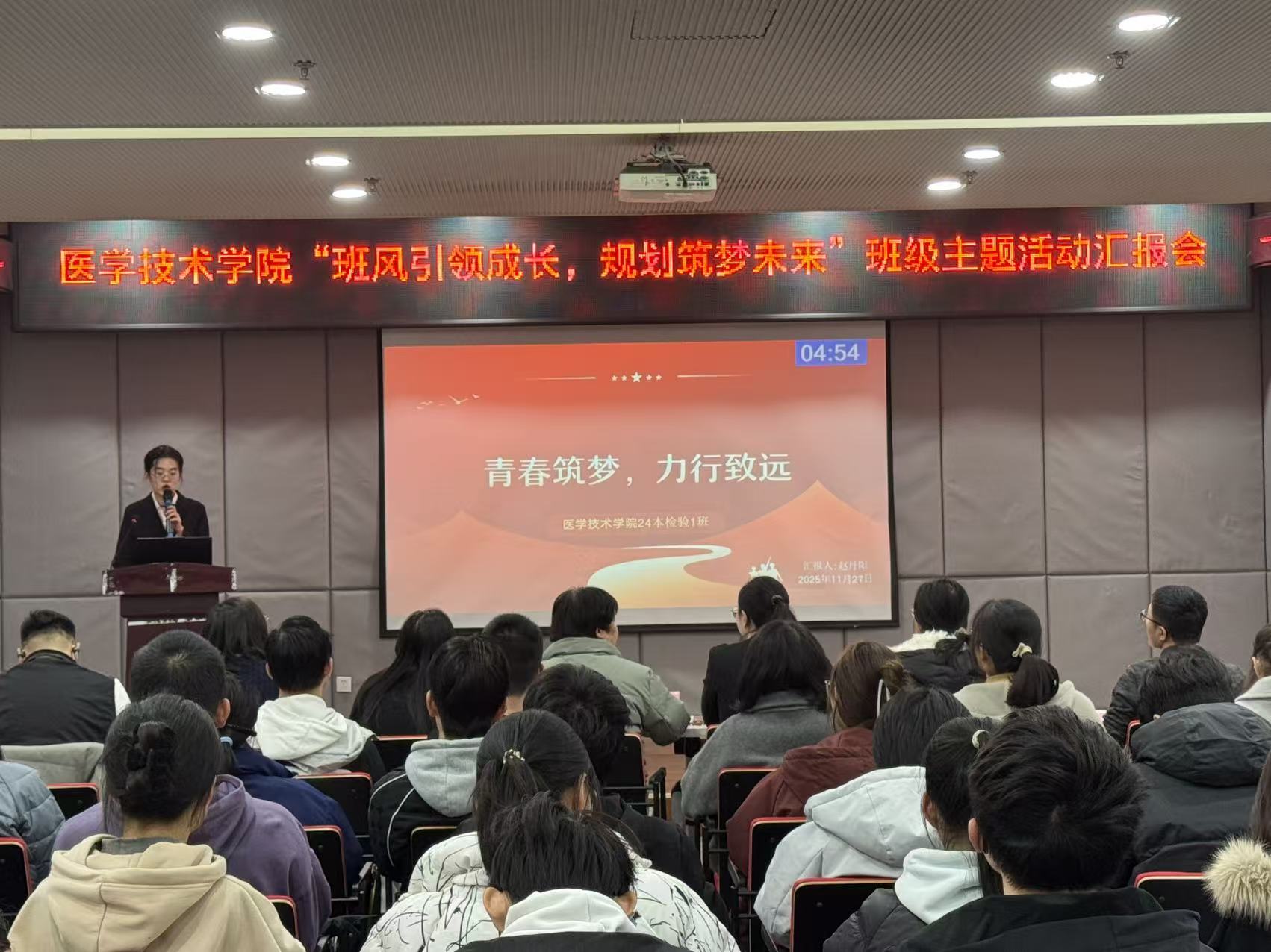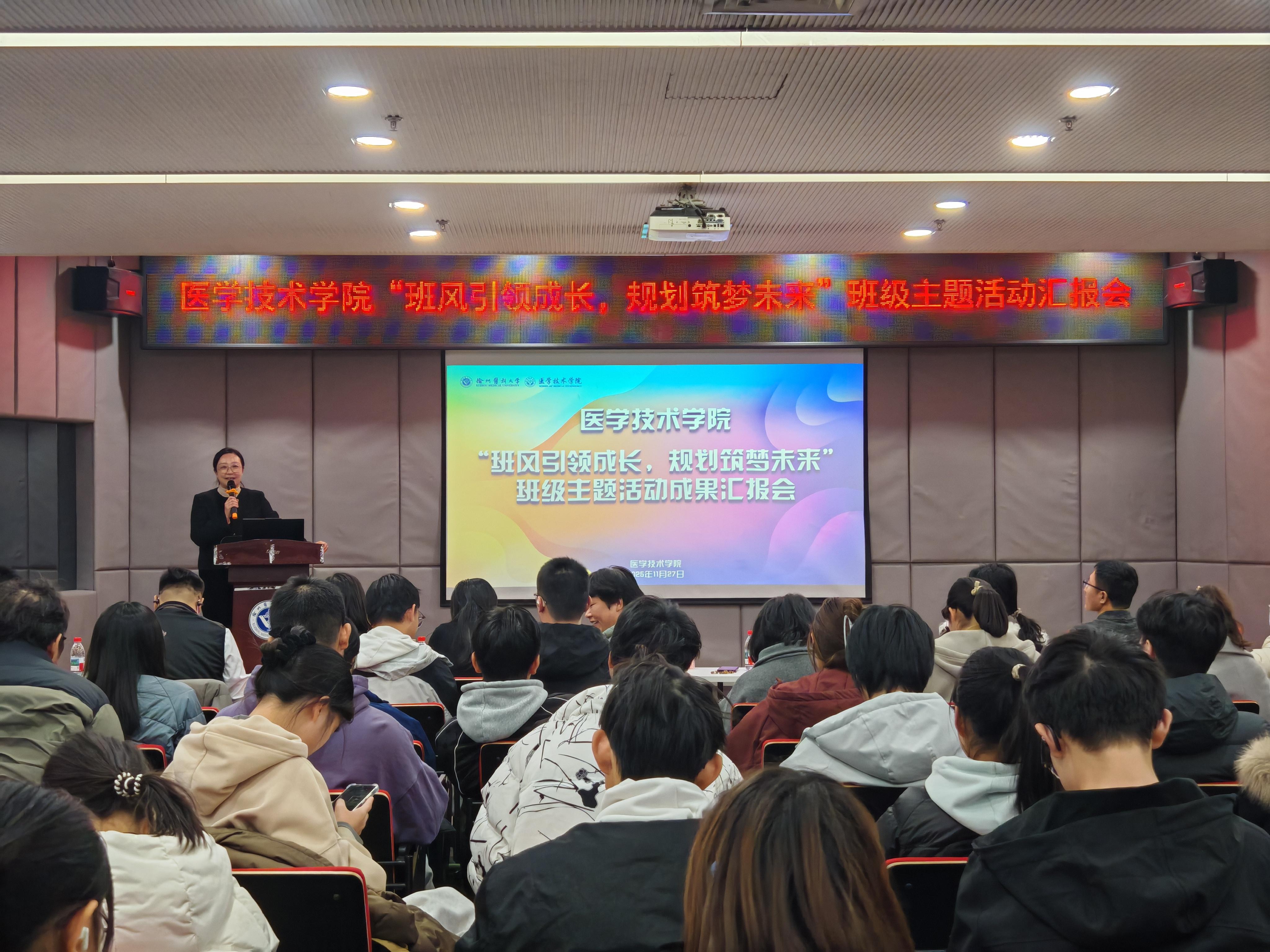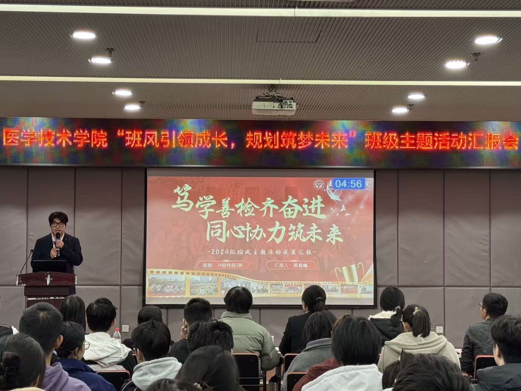 11月27日晚,医学技术学院“班风引领成长,规划筑梦未来” 班级主题活动汇报会在图书馆B102顺利举办。学院党委副书记李慧、副院长李洪春、各年级辅导员及班主任老师出席活动,与学生代表一起观摩了各班的精彩展示。