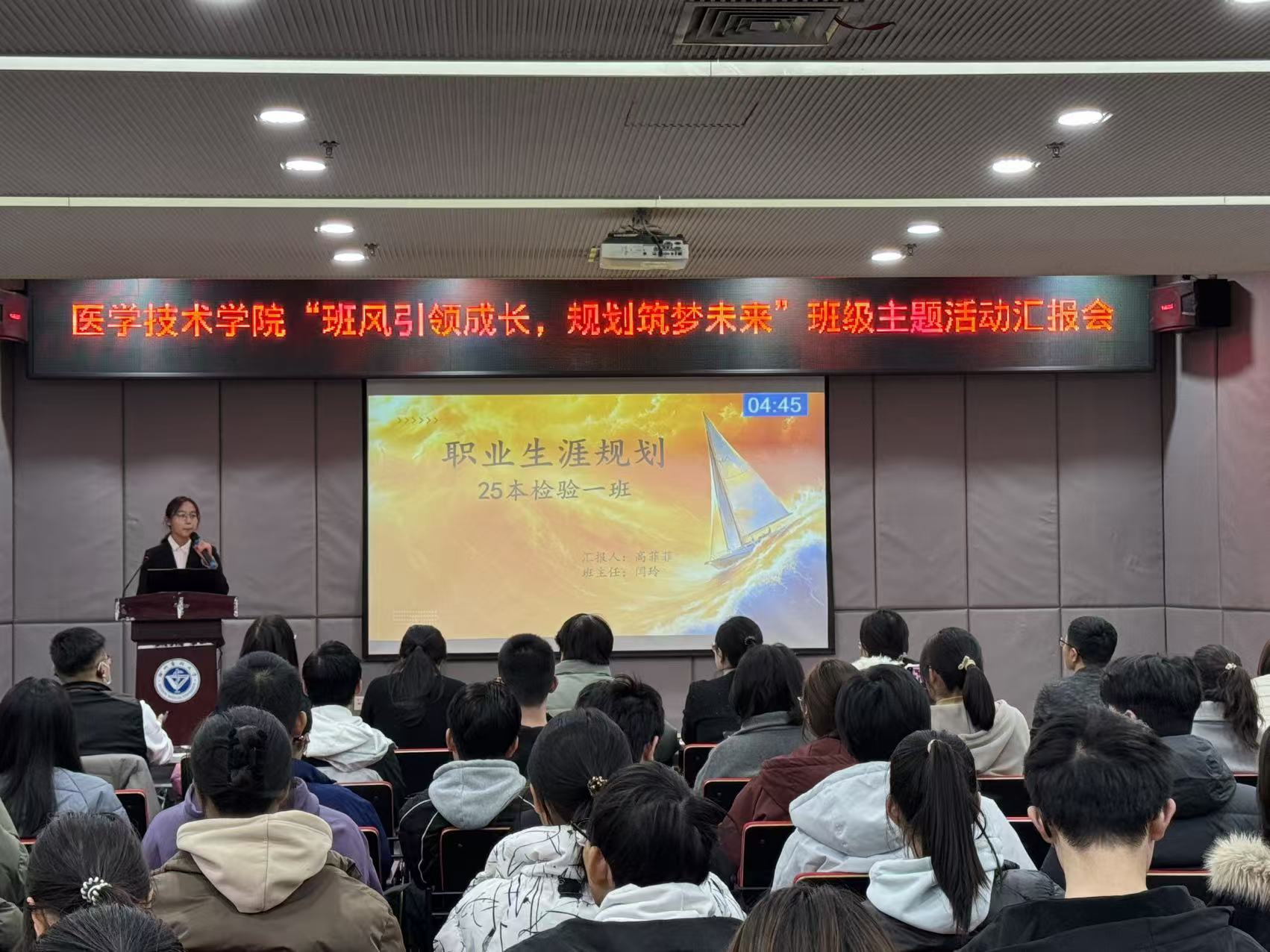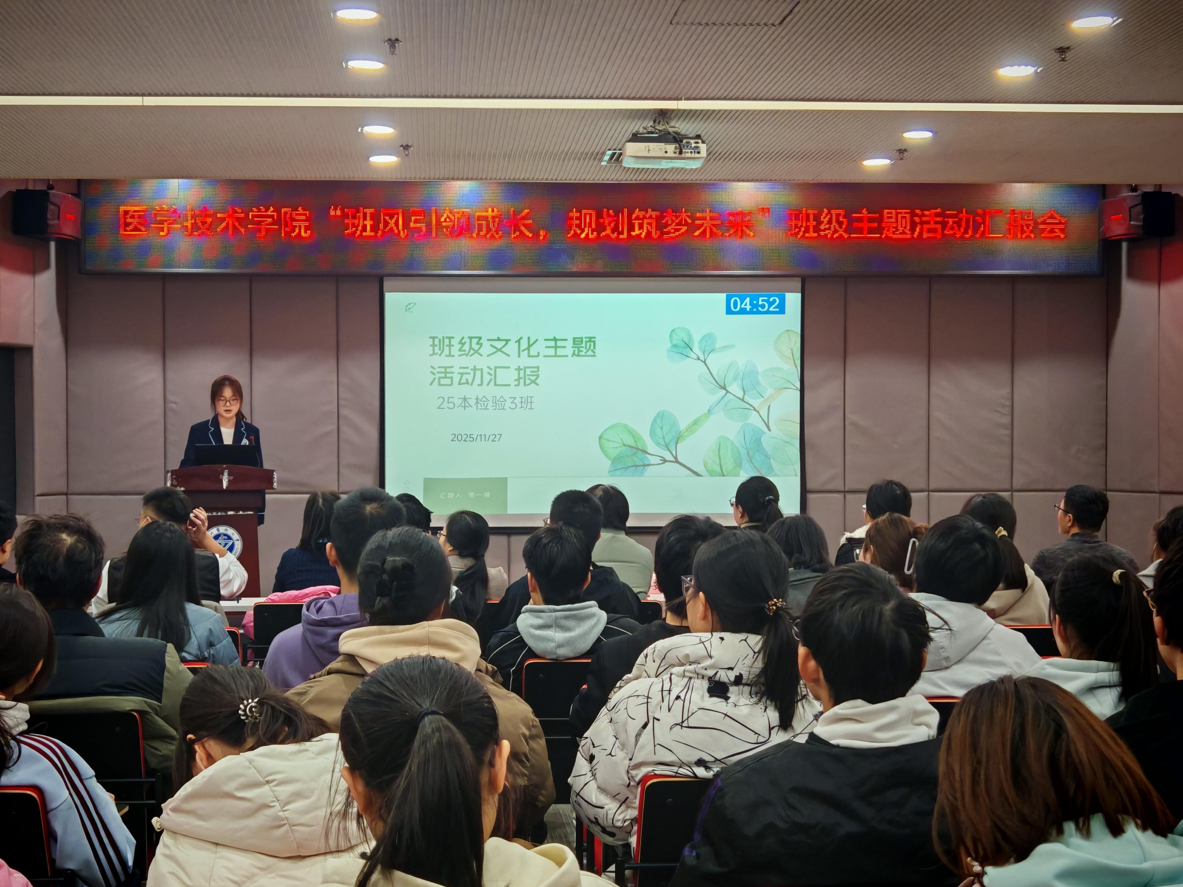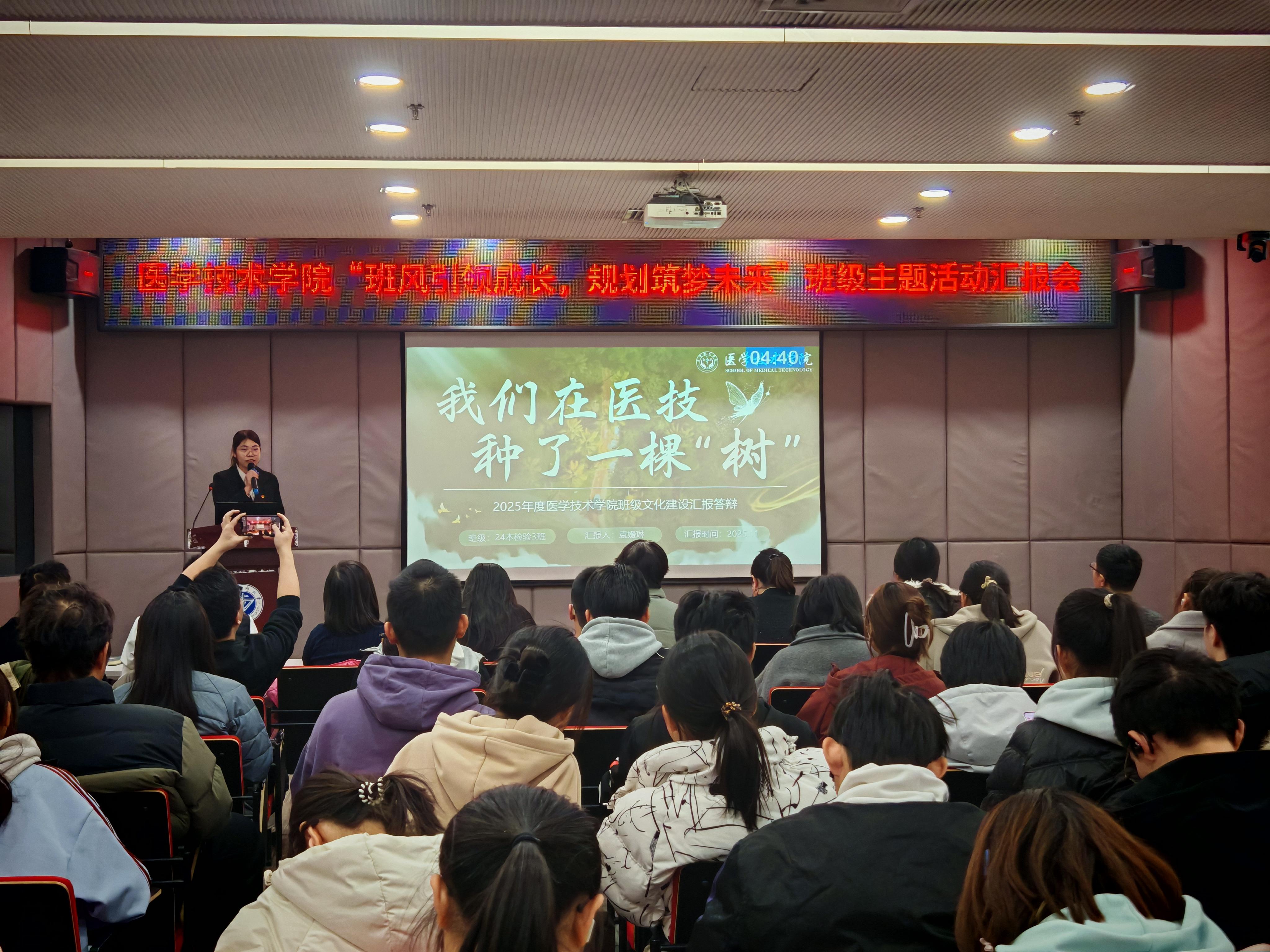 11月27日晚,医学技术学院“班风引领成长,规划筑梦未来” 班级主题活动汇报会在图书馆B102顺利举办。学院党委副书记李慧、副院长李洪春、各年级辅导员及班主任老师出席活动,与学生代表一起观摩了各班的精彩展示。