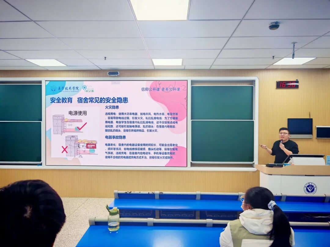 为切实强化校园安全管理,提升学生安全防范意识,保障学生身心健康与财产安全,医学技术学院于2025年11月26日至28日,依托学院“蒲公英讲堂”,分年级组织开展了安全教育大会。本次大会聚焦学生宿舍这一重点区域,剖析了常见安全隐患,引导学生自觉维护校园安全稳定。