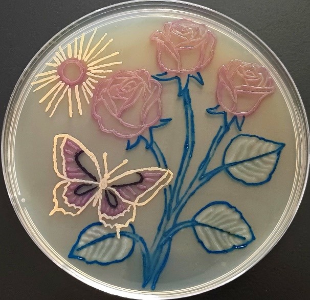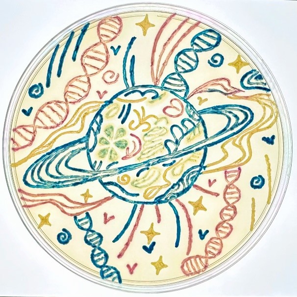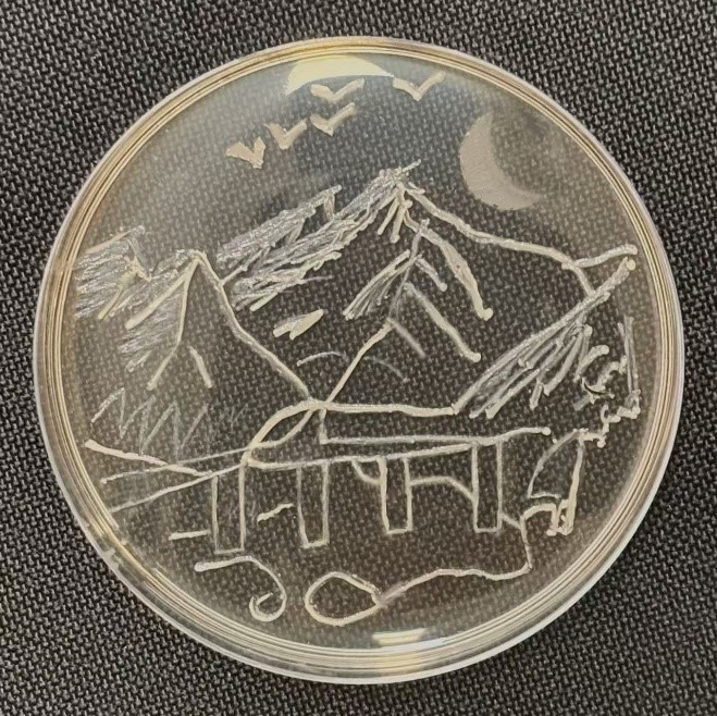 本次大赛以“生命之光”为主题,要求选手围绕这一主题,进行微生物平皿绘制,通过菌落形态、色素分泌及荧光蛋白等手段呈现艺术效果。评委从视觉效果、创意、菌落状态、照片质量、难易度和表现意图六个维度进行综合打分。我院学生参赛作品《山川有路,生命有光》(屈琛月,王金玥,嵇树磊,指导老师:李颖)获二等奖,《菌韵生花:培养皿里的玫瑰蝶影》(陆逸松,宗璇逸,指导老师:闫玲)和《宇宙源芒,生命之光》(宗璇逸,指导老师:闫玲)获三等奖。