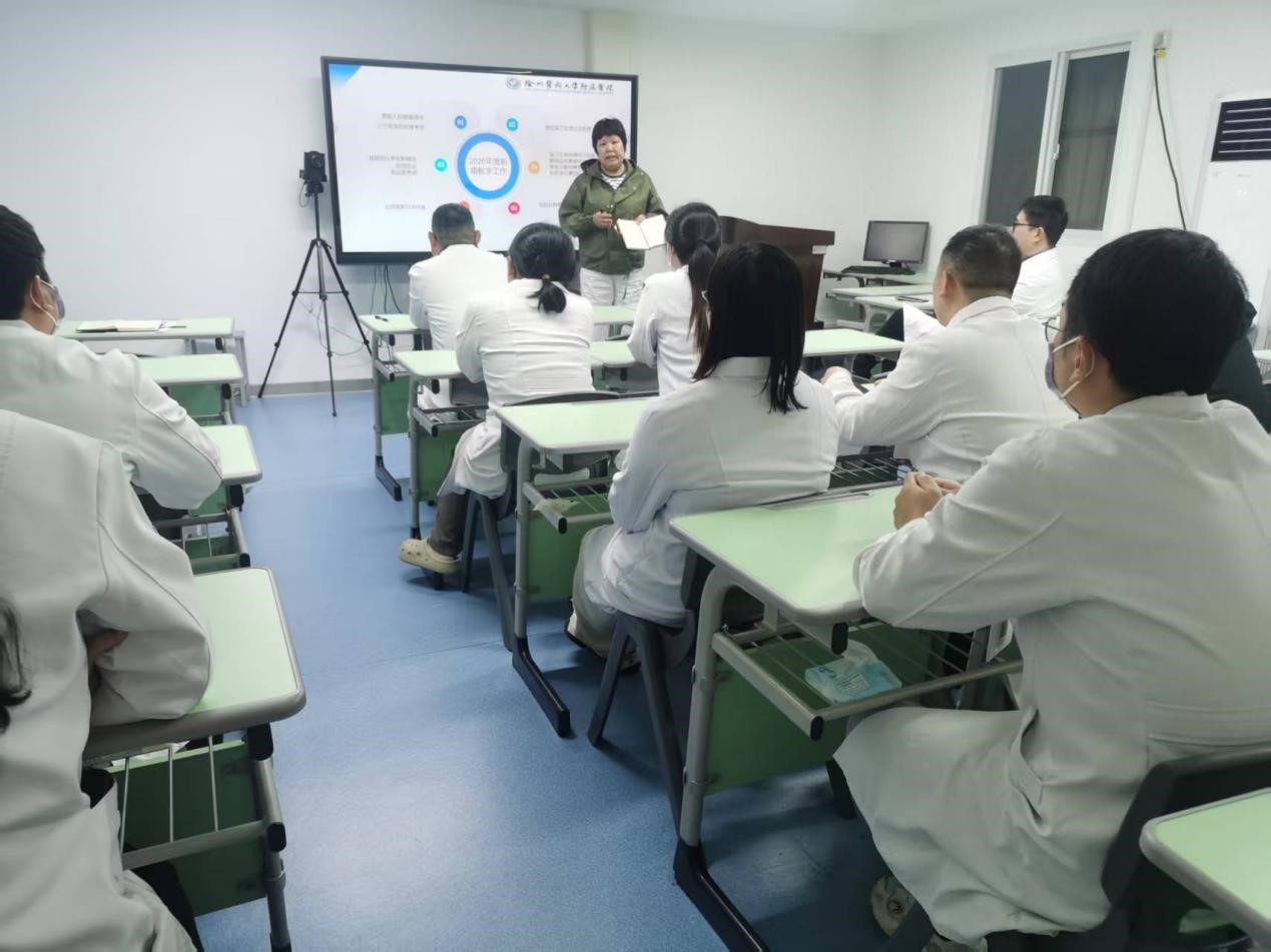 会议伊始,检验科教学秘书对2025年教学工作进行了全面细致的总结。过去一年,检验科在院科一体化的协同育人模式下,教学成果斐然。众多成绩的取得,离不开校院双方的紧密协作与全体教师的辛勤付出。随后,教学秘书根据领导指示,发布了2026年新增教学工作内容和目标,包括搭建院科共享教学案例库、开展临床检验技能联合竞赛、推进PBL(问题导向学习)课程改革等,为新一年的教学工作指明了方向与重点。