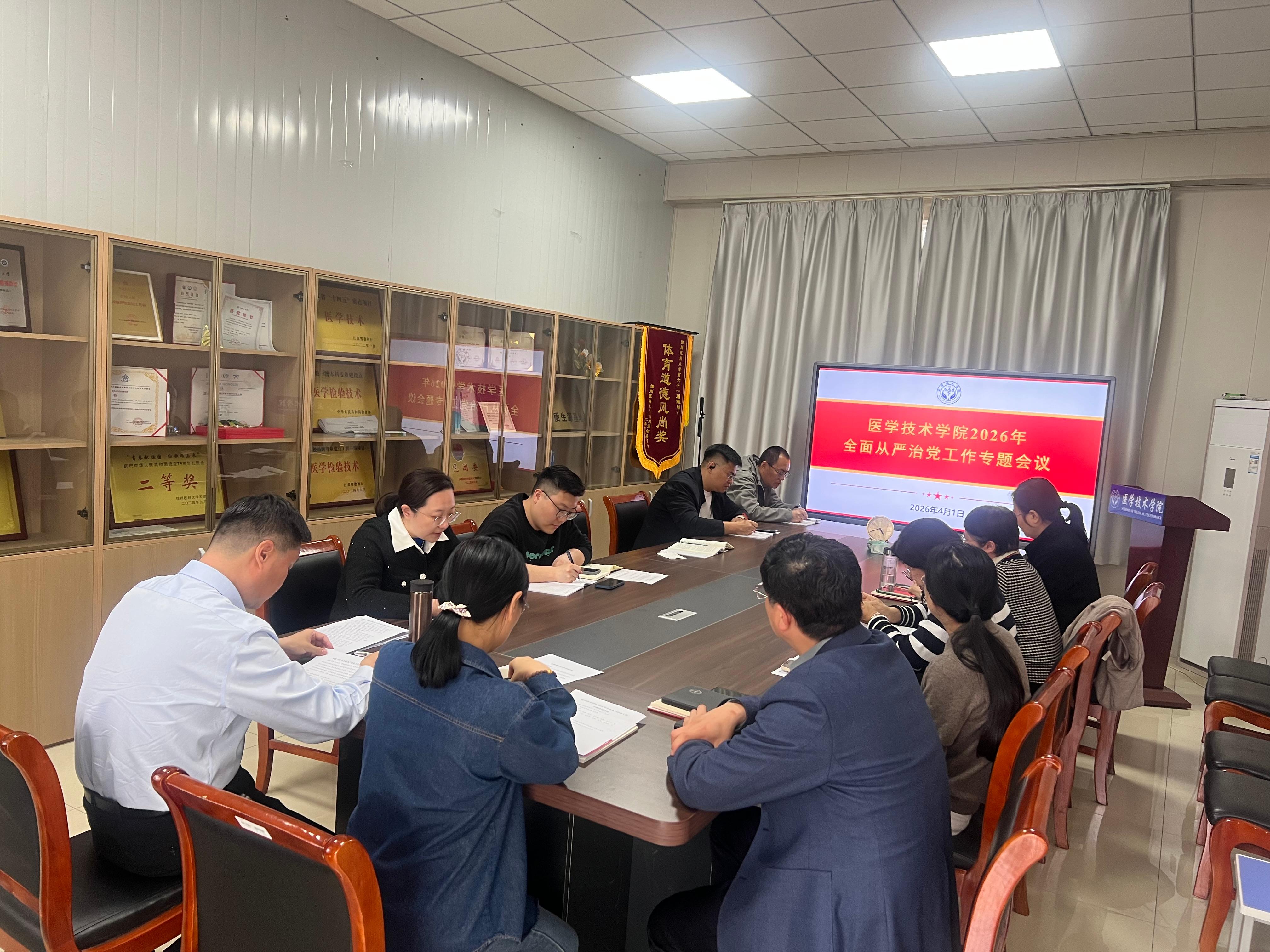为深入贯彻落实学校全面从严治党工作要求,4月1日下午,医学技术学院在医技简易房106会议室召开2026年全面从严治党工作专题会议。学院领导班子成员、各党支部书记、相关科室负责人、教研室主任及实验室负责人参加会议,会议由学院院长曾令宇主持。